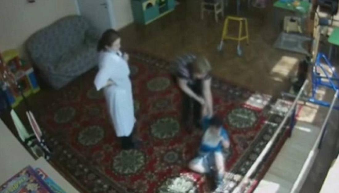 Αμέσως μετά πάνω από το παιδί βρίσκονται τρία άτομα που προσπαθούν, φαινομενικά, να του δώσουν το φάρμακό του. Μια από τις γυναίκες, τότε, τον αρπάζει από το χέρι και του το στρίβει πίσω από την πλάτη καθώς το παιδί, όπως είπε αργότερα, δεν ήθελε να πάρει τα φάρμακά του.