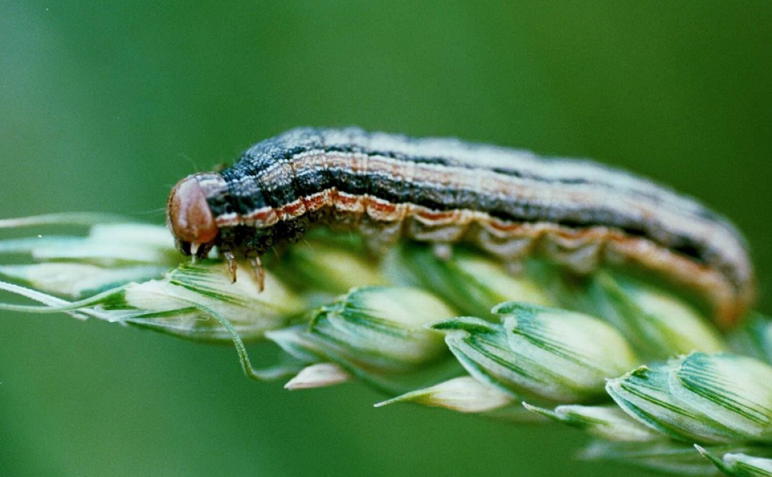Το "armyworm" (που λέγεται έτσι επειδή κατατρώει τη βλάστηση καθώς πορεύεται μέσα στις σοδιές), το οποίο είναι γνωστό επίσης στις Ηνωμένες Πολιτείες ως "fall armyworm" λόγω της τάσης του να μεταναστεύει εκεί το φθινόπωρο, ζει στη Βόρεια και τη Νότια Αμερική και μπορεί να καταστρέψει το καλαμπόκι, μια βασική καλλιέργεια, κρίσιμη για τη διατροφική ασφάλεια σε μεγάλα τμήματα της Αφρικής.