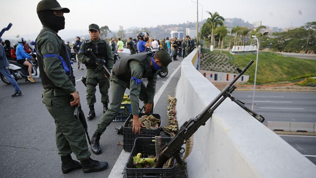 «Οποιος πλησιάσει το Μιραφλόρες με βία, θα αντιμετωπιστεί με βία. Αν χρειαστεί να χρησιμοποιήσουμε όπλα, θα το κάνουμε», δήλωσε ο Βλαντιμίρ Παντρίνο. Ο υπουργός Αμυνας πρόσθεσε ότι ο Χουάν Γκουαϊδό θα έχει την ευθύνη για τυχόν θανάτους στους δρόμους, ενώ κατηγόρησε την αντιπολίτευση ότι επιδιώκει αιματοχυσία.