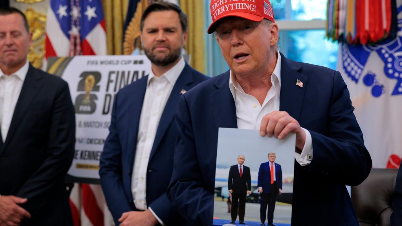 Ωστόσο, παρά την απογοήτευσή του για την αργή πρόοδο στην κατεύθυνση μιας ειρηνευτικής συμφωνίας, ο Τραμπ έδειξε στους διαπιστευμένους στον Λευκό Οίκο δημοσιογράφους μια φωτογραφία που του έστειλε ο Πούτιν από τη συνάντησή τους στο κόκκινο χαλί στην Αλάσκα και είπε ότι ο Ρώσος πρόεδρος θέλει να παραστεί στο Μουντιάλ του 2026 στις ΗΠΑ.