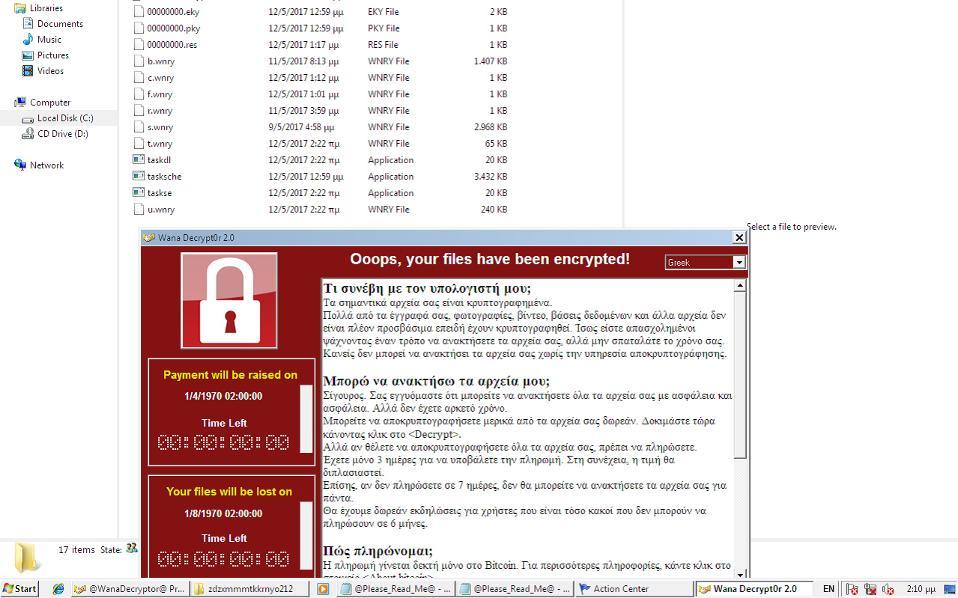 Το πρωί της 12ης Μαΐου οι τεχνικοί του ΑΠΘ δέχονταν τα πρώτα μηνύματα από χρήστες για την κυβερνοεπίθεση.