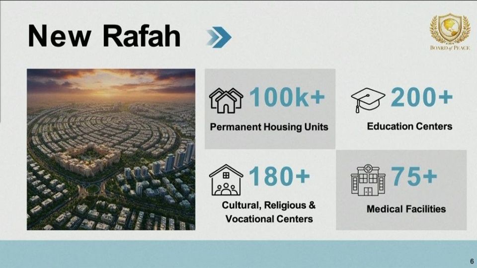 Παίρνοντας τον λόγο, ο Ντόναλντ Τραμπ εξήρε το έργο των Κούσνερ και Γουίτκοφ, προσεγγίζοντας το ζήτημα μέσα από την ιδιότητά του ως επιχειρηματίας ακινήτων. Ο Αμερικανός πρόεδρος έδωσε ιδιαίτερη έμφαση στη γεωγραφική θέση της Γάζας, χαρακτηρίζοντάς την ως ένα «εκπληκτικό παραθαλάσσιο ακίνητο».