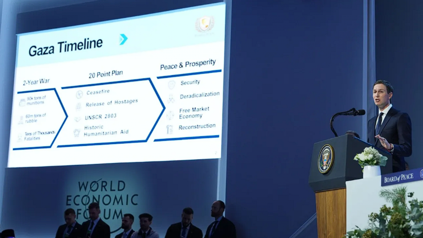 Στο πλαίσιο του Φόρουμ στο Νταβός, ο Τζάρεντ Κούσνερ παρουσίασε το λεπτομερές στρατηγικό σχέδιο της κυβέρνησης Τραμπ για την επόμενη μέρα στη Λωρίδα της Γάζας. Συνοδευόμενος από χάρτες και διαφάνειες, ο Κούσνερ περιέγραψε μια ολική ανακατασκευή του θύλακα που θα πραγματοποιηθεί σε στάδια, εστιάζοντας στη δημιουργία σύγχρονων κατοικιών για το εργατικό δυναμικό και στην εξασφάλιση μαζικών θέσεων απασχόλησης.
