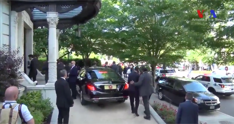 Ο Ταγίπ Ερντογάν έχει φτάσει στην πρεσβευτική κατοικία και παραμένει στην προεδρική λιμουζίνα. Μετά από λίγο βγαίνει από το αυτοκίνητο και ετοιμάζεται να εισέλθει στην πρεσβευτική κατοικία. Φωτογραφία via You Tube, VOA