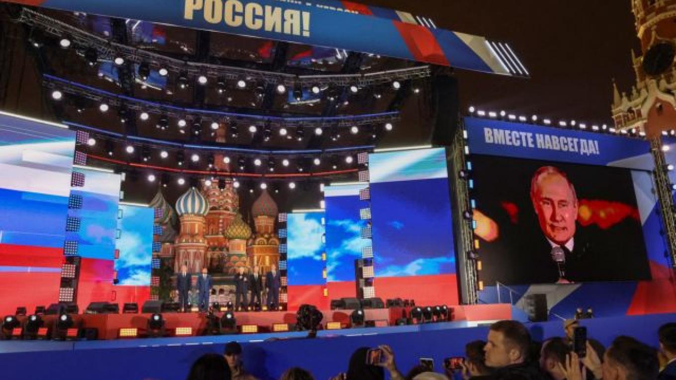 Ο Βλαντίμιρ Πούτιν απευθύνθηκε στο πλήθος που είχε συγκεντρωθεί στην Κόκκινη Πλατεία της Μόσχας για να παρακολουθήσει πατριωτική συναυλία εορτασμού της 10ης επετείου της προσάρτησης της Κριμαίας.