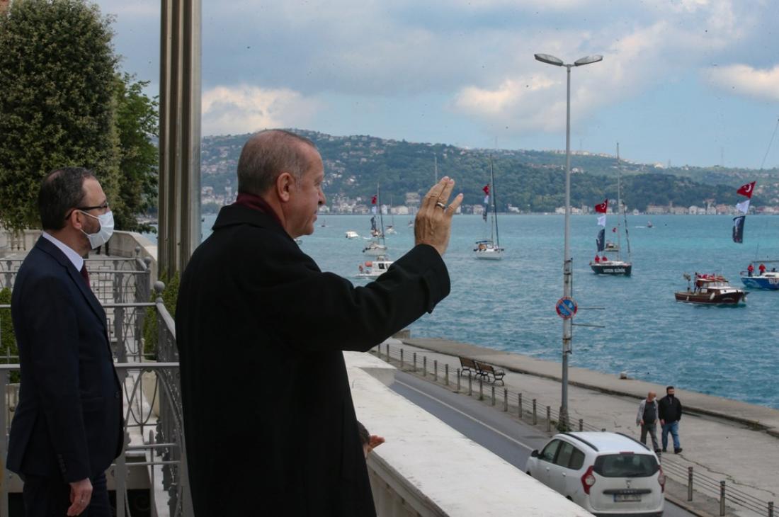 Δεκάδες πλοία πέρασαν σήμερα το μεσημέρι μπροστά από το Τουρκικό Προεδρικό, Μέγαρο Χούμπερ και ο Ταγίπ Ερντογάν τα χαιρετούσε από το μπαλκόνι, έχοντας δίπλα του ένα μικρό αγόρι.