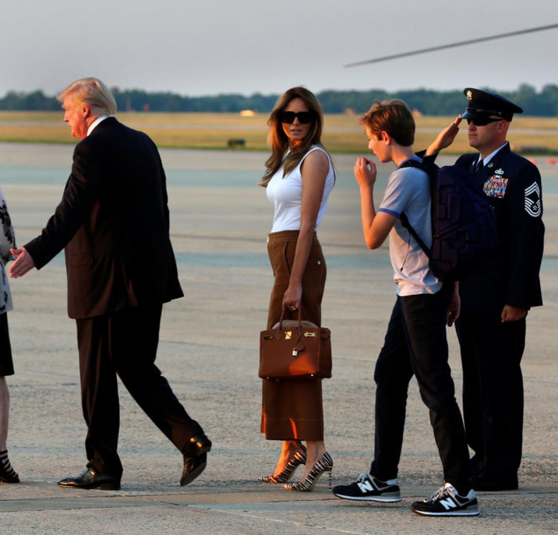 Μητέρα και γιός έσπασαν την παράδοση μένοντας στον Πύργο Τραμπ στην Νέα Υόρκη μετά την ορκωμοσία του προέδρου ώστε ο Μπάρον να ολοκληρώσει την σχολική χρονιά, ενώ ο πρόεδρος διέμενε στο Λευκό Οίκο.