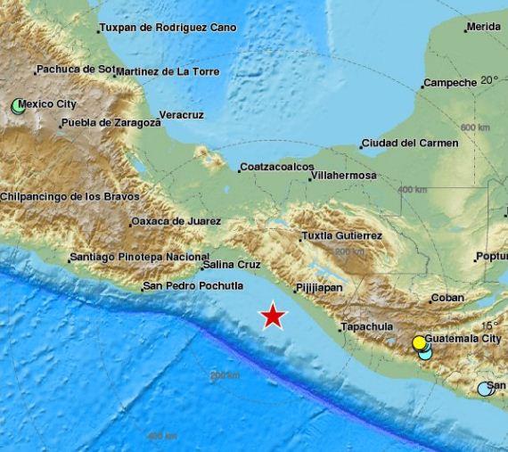 Το επίκεντρο του σεισμού βρισκόταν στον Ειρηνικό, σε απόσταση περίπου 100 χλμ. ατα ανοικτά της Πολιτείας Τσιάπας, σύμφωνα με το USGS.