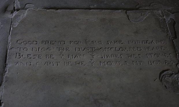 Τα ευρήματα βαθαίνουν το μυστήριο γύρω από τον τάφο του μεγάλου συγγραφέα και ποιητή. Στην ταφόπλακα δεν αναγράφεται το όνομα του βάρδου παρά μόνο μια «έμμετρη κατάρα»: