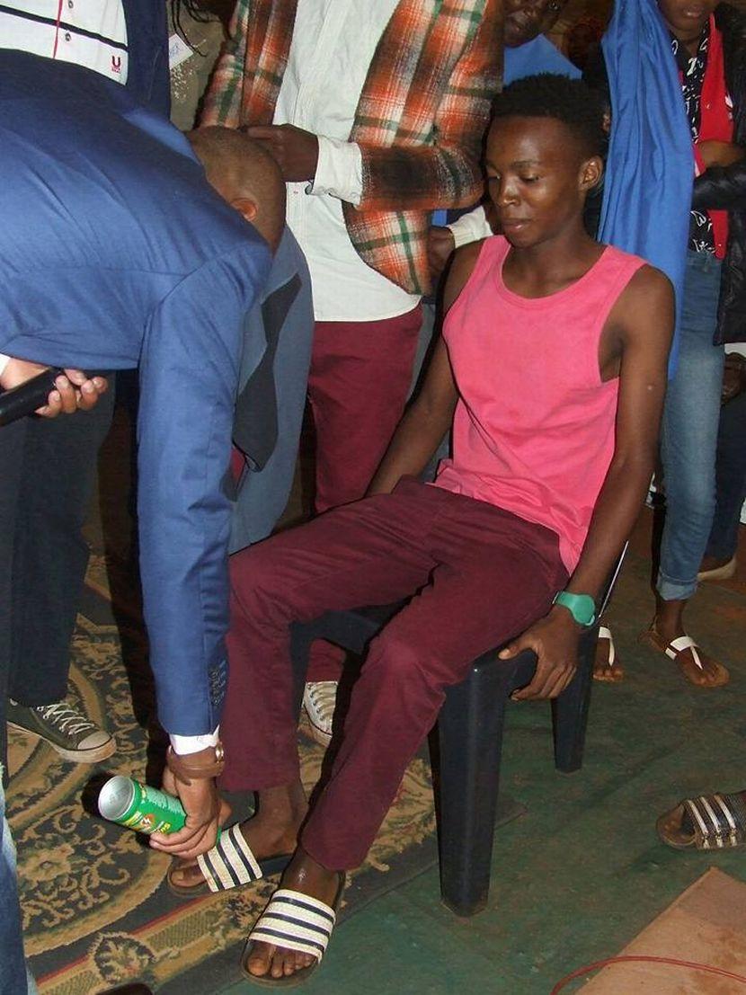 Στις φωτογραφίες που δημοσιεύονται στο Facebook, στη σελίδα της Εκκλησίας της Γενικής Συνέλευσης του Όρους Σιών (MZGA) ο Λεθέμπο Ραμπαλάγκο, ο επονομαζόμενος και "Ντετέκτιβ", ψεκάζει με εντομοκτόνο το πρόσωπο, τον λαιμό και τα πόδια νεαρών ανδρών και γυναικών.