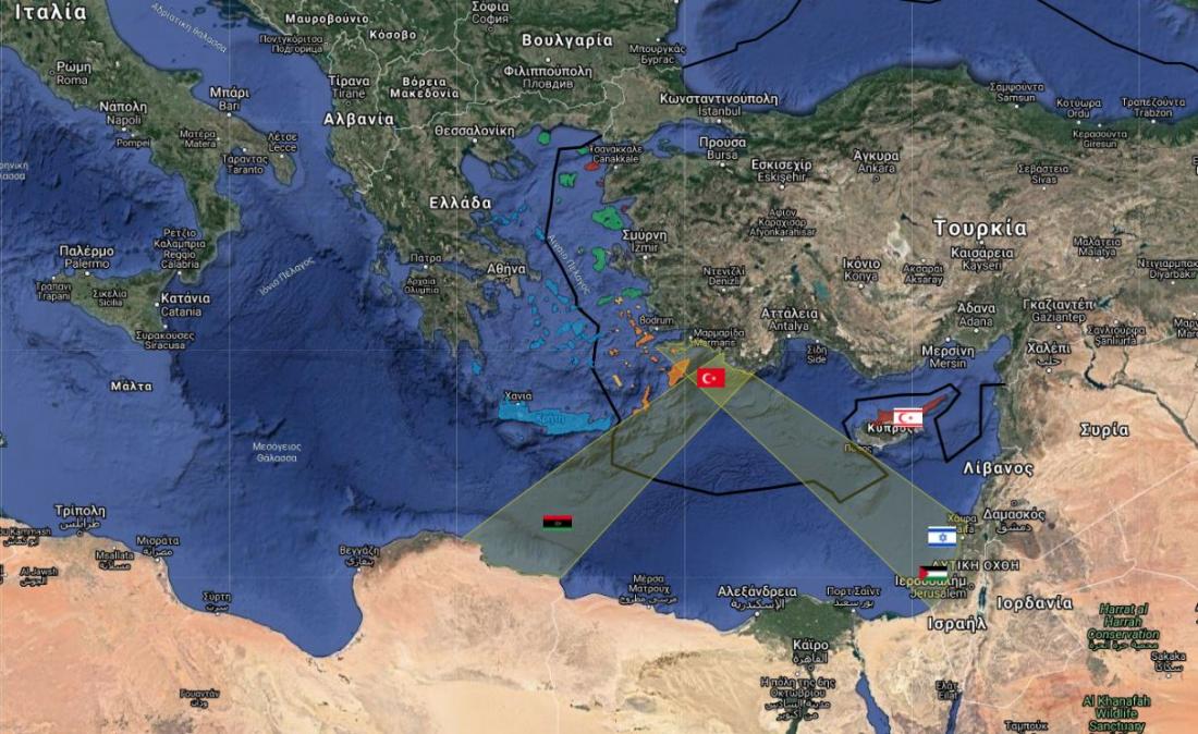 Παράλληλα παρουσιάζεται η αυθαίρετη χάραξη θαλάσσιων συνόρων με το περιβόητο τουρκολιβυκό μνημόνιο, καθώς και η πρόταση Γιαϊτζί για ορισμό ΑΟΖ ανάμεσα σε Τουρκία και Ισραήλ, σε βάρος της Κύπρου. Το ίδιο και με την Παλαιστινιακή Αρχή.