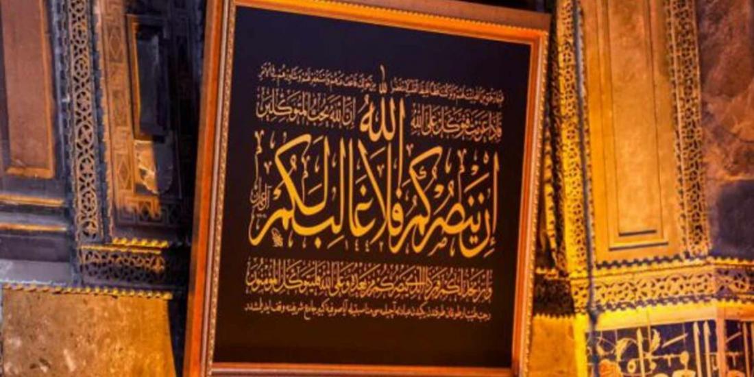 Al-i İmran suresi 159. ve 160. ayetlerin yazılı olduğu levha Ayasofya-i Kebir Cami-i Şerifi'ne asıldı