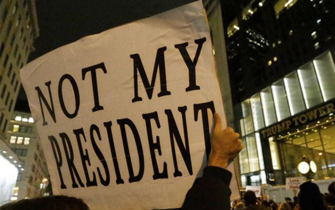 Μετά τη νίκη του Τραμπ, διαδηλωτές σε αρκετές πόλεις καταγγέλλουν τις υποσχέσεις του Ρεπουμπλικανού κατά την προεκλογική εκστρατεία να περιορίσει τη μετανάστευση και να καταγράψει τους μουσουλμάνους, ενώ διαμαρτύρονται για τη στάση του έναντι των γυναικών.