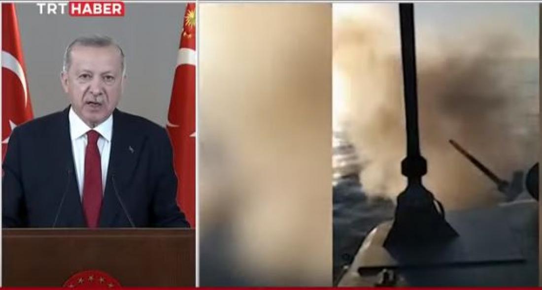 Με πλάνα από τουρκικά πολεμικά να ρίχνουν βολές, κατά τη διάρκεια της προκλητικής άσκησης «Γαλάζια Πατρίδα», ο Ερντογάν κατηγόρησε την Ελλάδα ότι προσπαθεί να σφετεριστεί τα «τουρκικά δικαιώματα στη Μεσόγειο»!