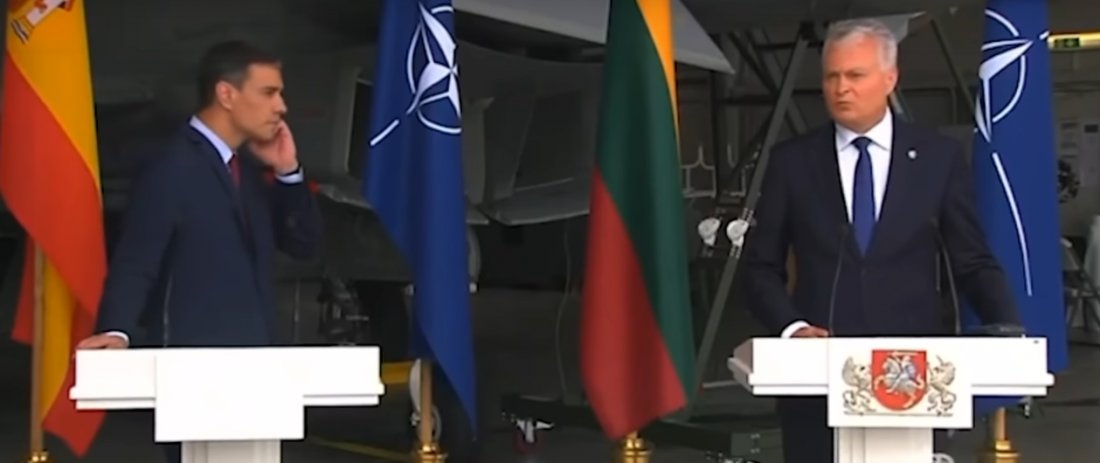 Απότομα διακόπηκε η κοινή συνέντευξη Τύπου του πρωθυπουργού της Ισπανίας, Πέδρο Σάντσεθ, και του προέδρου της Λιθουανίας, Γκιτάνας Ναουσέντα, λόγω εισβολής ρωσικού αεροσκάφους στον εναέριο χώρο της Λιθουανίας.