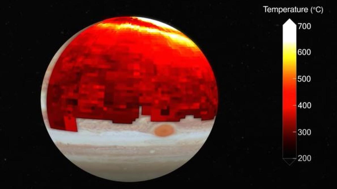 Η ατμόσφαιρα του Δία, που είναι διάσημη για τις χαρακτηριστικές πολύχρωμες καταιγίδες της, είναι επίσης αναπάντεχα καυτή, εκατοντάδες βαθμούς πάνω από ό,τι προβλέπουν τα θεωρητικά μοντέλα. Ο γιγάντιος αέριος πλανήτης απέχει εκατοντάδες εκατομμύρια χιλιόμετρα από τον Ήλιο και δέχεται μόνο το 4% της ηλιακής ακτινοβολίας σε σχέση με τη Γη. Έτσι, θεωρητικά, η ανώτερη ατμόσφαιρα του θα έπρεπε να έχει θερμοκρασία μείον 70 βαθμών Κελσίου, όμως τα νέφη στην κορυφή της έχουν μετρηθεί να έχουν πάνω από 400 βαθμούς για λόγους που δεν είναι σαφείς.