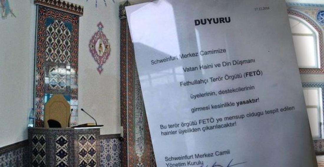 Σύμφωνα με την απόφαση της εκτελεστικής επιτροπής στο κεντρικό Τζαμί της γερμανικής πόλης, τα μέλη της Feto, δεν επιτρέπεται να εισέλθουν στους χώρους του τζαμιού!