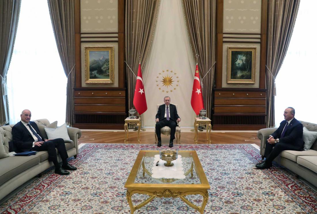 Στο πλαίσιο αυτό, ο Τούρκος πρόεδρος προσπάθησε τελευταία να εμφανιστεί ως «περιστερά» απέναντι στην Ευρώπη και την Ελλάδα -όπως έδειξε και με την επιμονή του να συναντήσει εκτός προγράμματος χθες τον υπουργό Εξωτερικών Νίκο Δένδια.