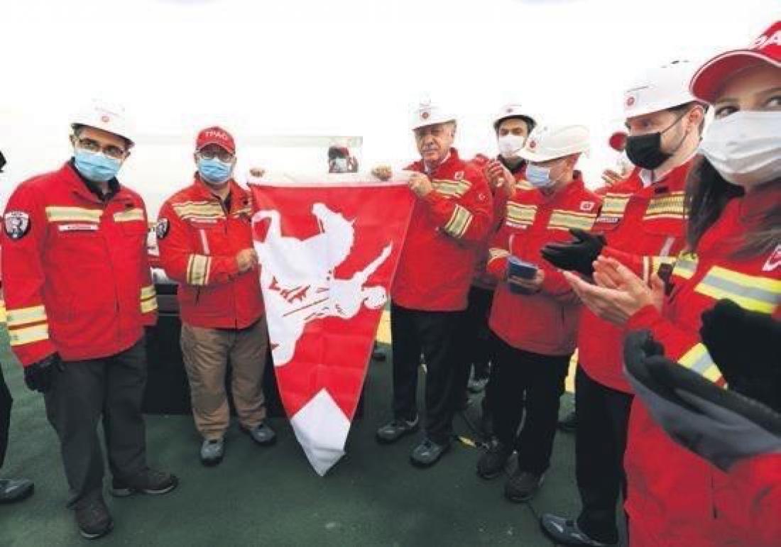 Σαφής λοιπόν ο συμβολισμός: Η σημαία στον… Σουλτάνο για τη χθεσινή ανακοίνωσή του ότι το κοίτασμα φυσικού αερίου στη Μαύρη Θάλασσα μετρήθηκε αυξημένο κατά 85 δισεκατομμύρια κυβικά μέτρα στα 405 δισεκατομμύρια.