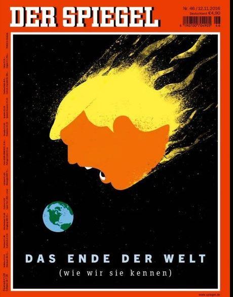 Μόλις τρεις μέρες μετά τη νίκη του υποψηφίου των Ρεπουμπλικανών στις αμερικανικές εκλογές, γίνεται συζήτηση σε όλη την υφήλιο για το τι πρόκειται να ακολουθήσει. Έτσι το Spiegel με το πρωτοσέλιδο του εκτιμά ότι «ο κομήτης Τραμπ θα χτυπήσει και θα καταστρέψει τη γη».