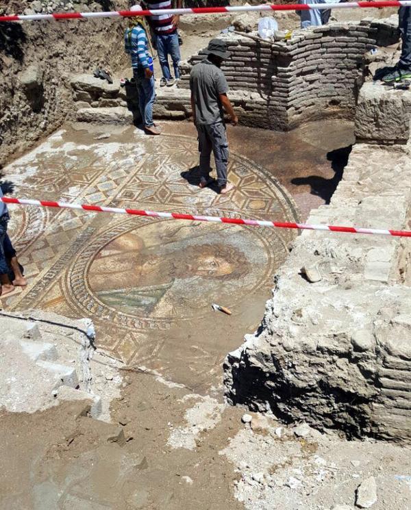 Πρόκειται για ένα σπάνιας ομορφιάς μωσαϊκό με τον θεό της θάλασσας.Όπως μεταδίδει το πρακτορείο Anadolu το μωσαϊκό βρέθηκε σε χαμάμ της ρωμαϊκή εποχής .Στο κάτω μέρος του μωσαϊκού είναι γραμμένο στα ελληνικά η φράση χαιρετισμού από όλους τους λουόμενους.