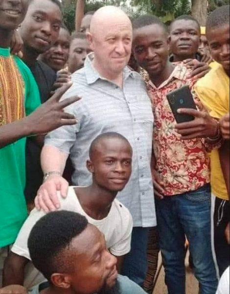 Στις φωτογραφίες ο Πριγκόζιν φαίνεται να βγάζει σέλφι με ντόπιους σε χώρα της Αφρικής - πιθανόν στην πρωτεύουσα Μπανγκούι της Κεντροαφρικανικής Δημοκρατίας - ένα από τα αφρικανικά έθνη όπου δραστηριοποιείται στρατιωτικά η «Wagner».