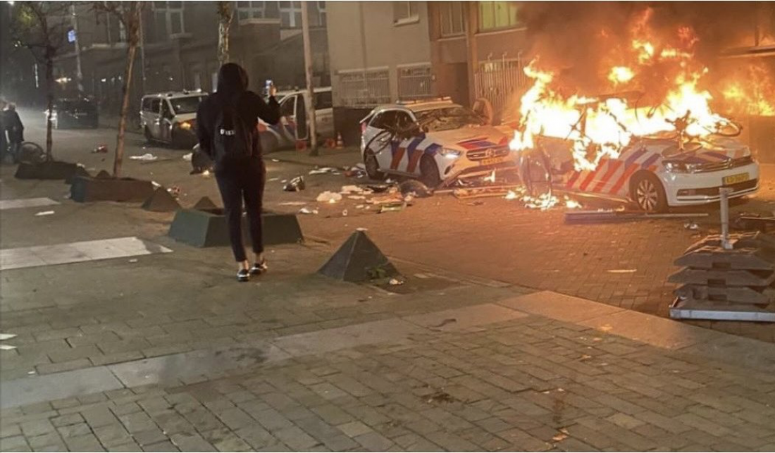 Σε μια δημοφιλή περιοχή της Χάγης όπου έχει έδρα η ολλανδική κυβέρνηση, το Σάββατο το βράδυ πολλές εκατοντάδες άνθρωποι πέταξαν πέτρες και διάφορα αντικείμενα σε αστυνομικούς και έβαλαν φωτιά σε ποδήλατα.