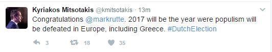 Ολλανδικές εκλογές: Συγχαρητήρια του προέδρου της ΝΔ Κ. Μητσοτάκη στον νικητή των εκλογών Μ. Ρούτε