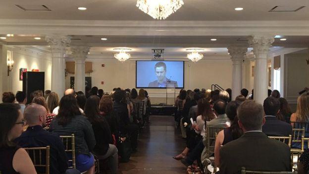 Ουάσινγκτον. Κόσμος παρακολουθεί απ'ευθείας από το Λονδίνο την ομιλία του Μπρένταν Κοξ