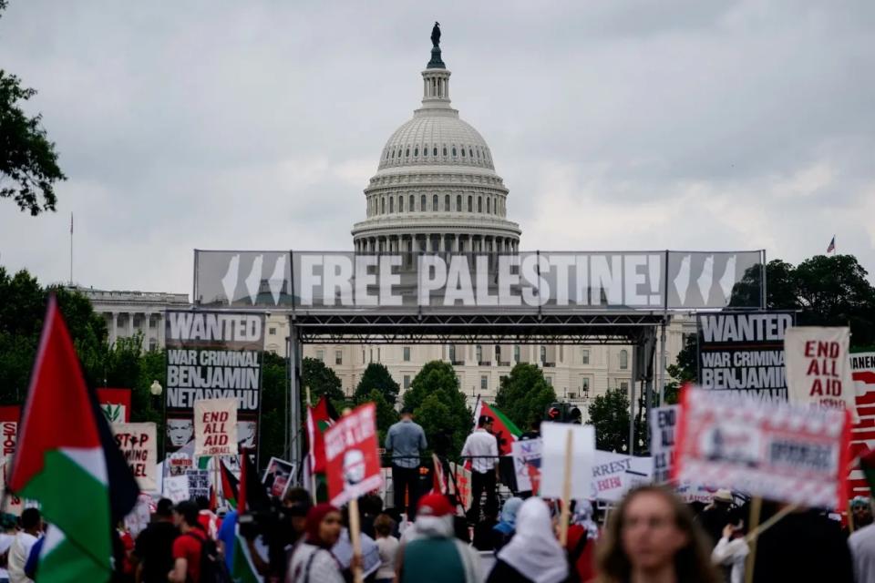 Χιλιάδες διαδηλωτές κατά του πολέμου του Ισραήλ στη Λωρίδα της Γάζας, ορισμένοι κρατώντας σημαίες της Παλαιστίνης, συγκεντρώνονταν κοντά στο Καπιτώλιο πριν από την ομιλία του Ισραηλινού πρωθυπουργού Μπενιαμίν Νετανιάχου στο Κογκρέσο.