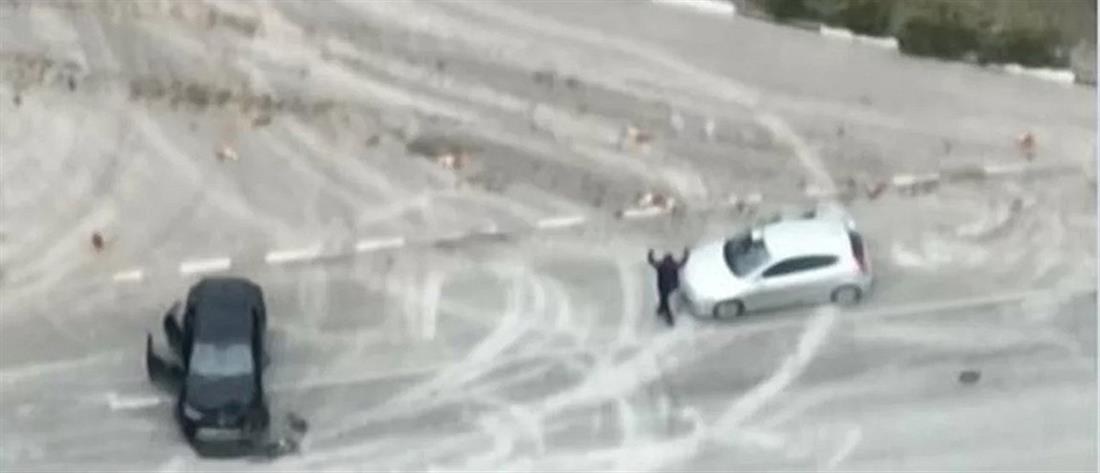Το drone καταγράφει διάφορα αυτοκίνητα που δεν είναι στρατιωτικά, αλλά απλά επιβατικά, να κατευθύνονται προς το κέντρο του Κιέβου. Οι πρώτοι οδηγοί μπορεί να πρόσεξαν τα ρωσικά τανκ και να έκαναν αναστροφή, ωστόσο ένα γκρίζο-ασημί αμάξι επιβραδύνει και σταματά.
