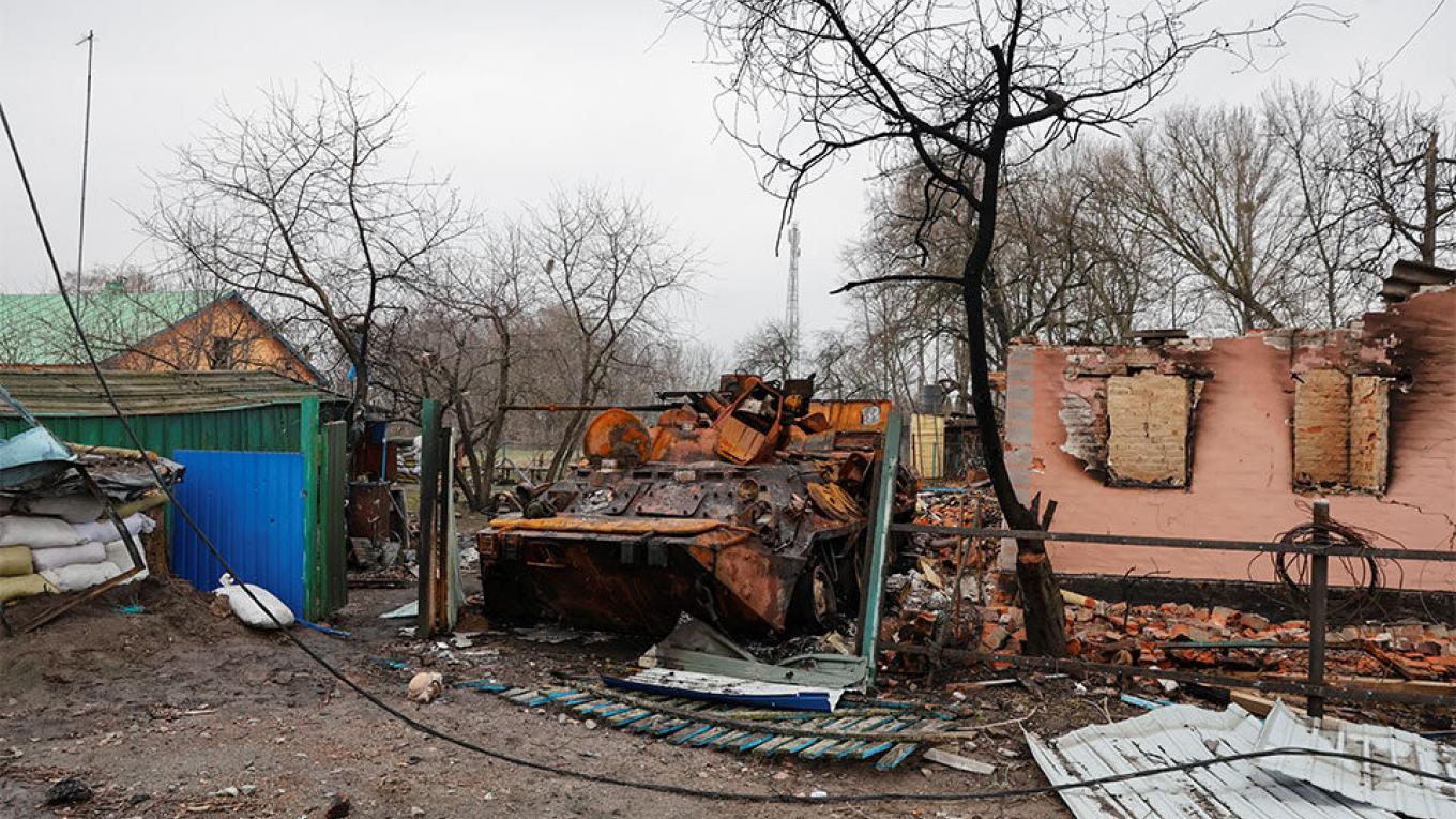 Σύμφωνα με πληροφορίες, πούλμαν με παιδιά τοποθετήθηκαν μπροστά από τανκς στο χωριό Νόβι Μπικίφ, κοντά στην περικυκλωμένη πόλη Τσερνίχιβ, 100 μίλια βόρεια του Κιέβου.