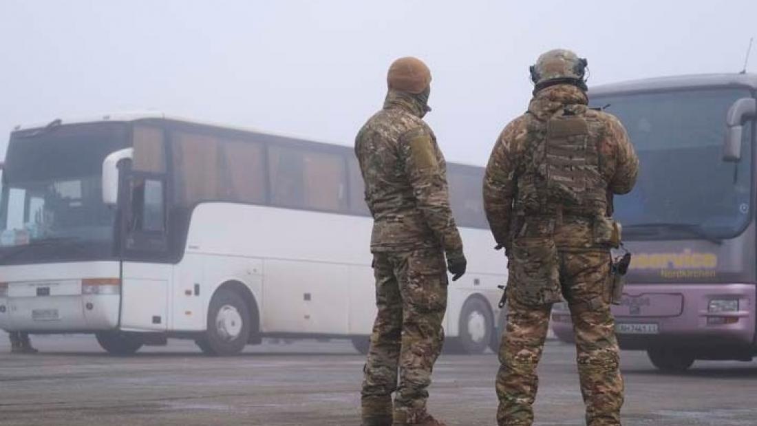 Ρωσικά τηλεοπτικά μέσα, έδειξαν την ανταλλαγή από την πλευρά των αυτονομιστών των αιχμαλώτων τους, οι οποίοι πλαισιωμένοι από ένοπλους στρατιώτες βάδιζαν προς το σημείο της ανταλλαγής.