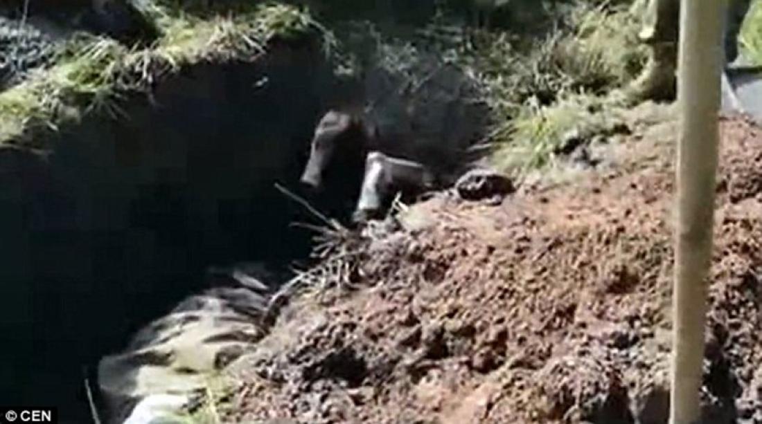 Στη συνέχεια, ένας από αυτούς «μπήγει» το φτυάρι του ανάποδα στο χώμα.