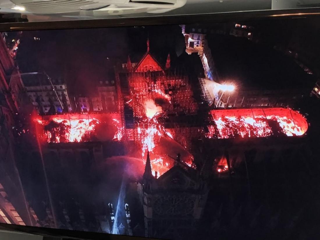 «Η Παναγία των Παρισίων στις φλόγες. Έντονη συγκίνηση για ολόκληρο το έθνος. Οι σκέψεις προς όλους τους καθολικούς και προς όλους τους Γάλλους. Όπως όλοι οι συμπατριώτες μας, εκφράζω τη λύπη μου που βλέπω να καίγεται αυτό το κομμάτι όλων μας».