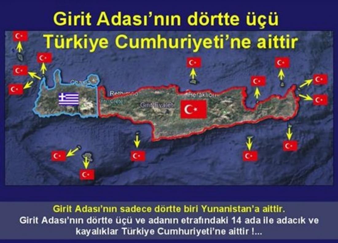 Τουρκικές μη κυβερνητικές οργανώσεις ετοιμάζονται να κινηθούν νομικά και να προσφύγουν στη διεθνή δικαιοσύνη διεκδικώντας την «επιστροφή» της Κρήτης και κάποιων νησιών του Αιγαίου στην Τουρκία, όπως αναφέρει το επίσημο πρακτορείο ειδήσεων της Τουρκίας, «Αναντολού», σε άρθρο του την Τετάρτη 13 Μαΐου!!!