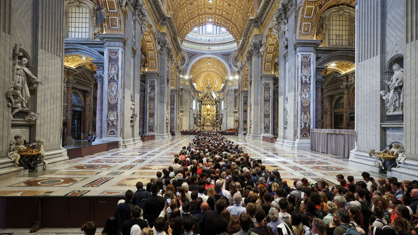Ουρές σχηματίζουν δεκάδες χιλιάδες πιστοί για να αποχαιρετίσουν το σκήνωμα του Πάπα Φραγκίσκου στην Βασιλική του Αγίου Πέτρου στο Βατικανό.
