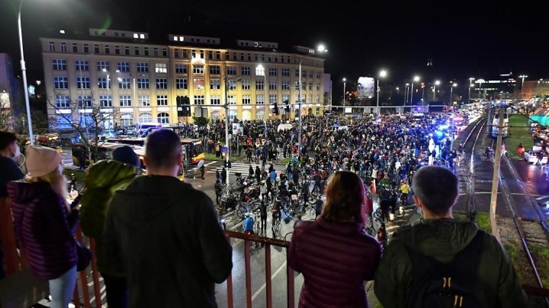 Οι δύο διαδηλωτές, η Άνια Μπιελάβσκα και ο Λούκας Στάνεκ, ζωγράφισαν στα γυμνά σώματά τους βρισιές, προτού κάνουν μια βόλτα στην περιοχή μπροστά από το προεδρικό μέγαρο, περιστοιχισμένοι από πλήθος φωτογράφων.