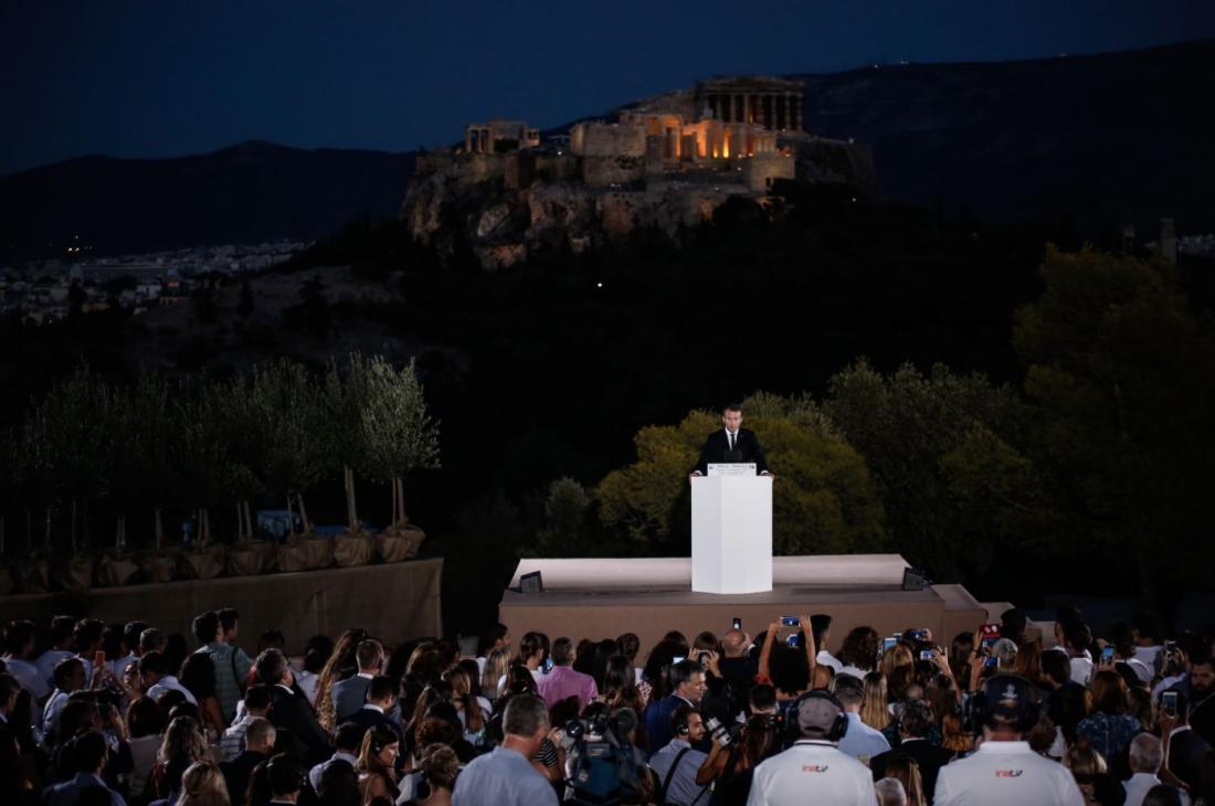 «Ο περίγυρος της ομιλίας του ήταν κινηματογραφικός, θεατρικός, όπως ακριβώς αρέσει στον Γάλλο Pρόεδρο: ο λόφος της Πνύκας, όπου γεννήθηκε η ελληνική δημοκρατία, με την Ακρόπολη στο βάθος. Η φιλοδοξία του δεν ήταν κατώτερη του φόντου: να σπείρει τον σπόρο για τη νέα Ευρώπη, ακριβώς στον τόπου όπου η τελευταία χρηματοοικονομική κρίση έφθασε έως του σημείου να την διαλύσει. Κανένας άλλος Γάλλος Πρόεδρος είχε μιλήσει σε αυτό το σημείο. Ο μοναδικός προκάτοχος ήταν ο μεγάλος Γάλλος συγγραφέας Αντρέ Μαλρώ το 1959, όταν ήταν υπουργός Πολιτισμού του στρατηγού Ντε Γκωλ. Ο Μακρόν επικαλέσθηκε τη φράση που είχε εκφωνήσει ο Μαλρώ στο ίδιο σημείο: "υπάρχει μία μυστική Ελλάδα, που αναπαύεται μέσα στην καρδιά κάθε δυτικού ανθρώπου"», επισημαίνει στην ανταπόκρισή της η εφημερίδα.