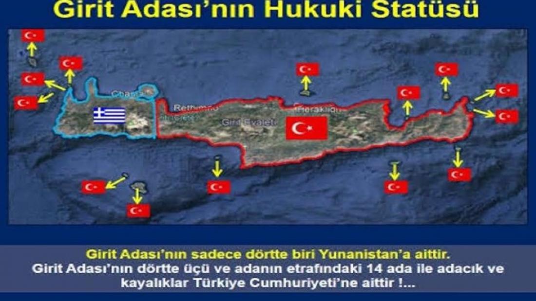 γ. Η Ελλάδα, σήμερα κατέχει παράνομα τα υπόλοιπα 3/4 της Κρήτης καθώς και τα παρακείμενα νησιά, νησίδες και βραχονησίδες. Θα πρέπει άμεσα να τα παραδώσει στην Τουρκία και να απομακρύνει τις στρατιωτικές Μονάδες, τις στρατιωτικές εγκαταστάσεις και τους πυραύλους S-300 που έχει εγκαταστήσει εκεί παράνομα από το 1999.