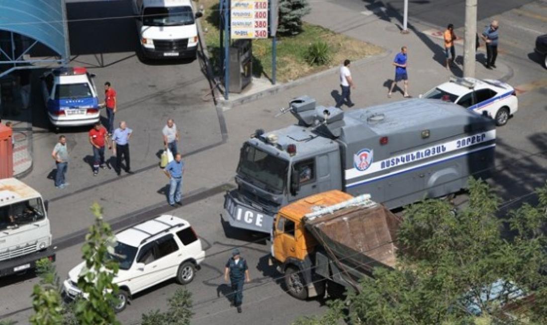 Σύμφωνα με πληροφορίες υπάρχει ένας νεκρός και δεκάδες τραυματίες ενώ μεταξύ των ομήρων φέρεται να είναι ο επικεφαλής της αρμενικής αστυνομίας.