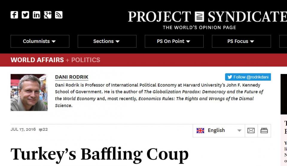 Μια διαφορετική αλλά ιδιαίτερα ενδιαφέρουσα ανάλυση του καθηγητή του Χάρβαρντ, Ντάνι Ρόντρικ για το πρόσφατο αποτυχημένο πραξικόπημα της Τουρκίας, δημοσίευσε το γνωστό «Project Syndicate».
