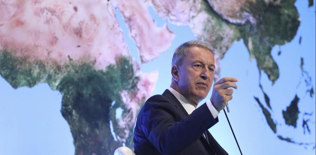 Πρόκειται για τον ίδιο χάρτη, μπροστά στον οποίο φωτογραφήθηκε και ο Τούρκος πρόεδρος Ερντογάν. Άλλη μία κίνηση με υψηλούς συμβολισμούς και μηνύματα από τον Τούρκο υπουργό Άμυνας, Χουλουσί Ακάρ μπροστά στις κάμερες.