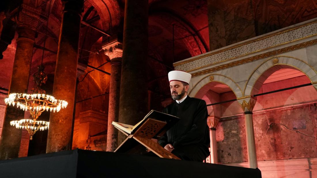 Οι ιμάμηδες διάβασαν αποσπάσματα από το Κοράνι, τα οποία ακούστηκαν από τον ιστορικό ναό της Αγίας Σοφίας.