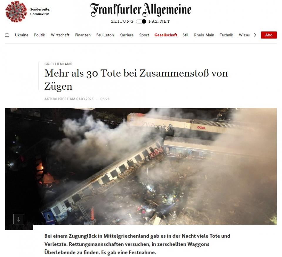 Οι γαλλικές εφημερίδες Figaro και Monde καλύπτουν εκτενώς το τραγικό συμβάν, κάνοντας λόγο για «το χειρότερο σιδηροδρομικό δυστύχημα που έχει σημειωθεί ποτέ στην Ελλάδα».