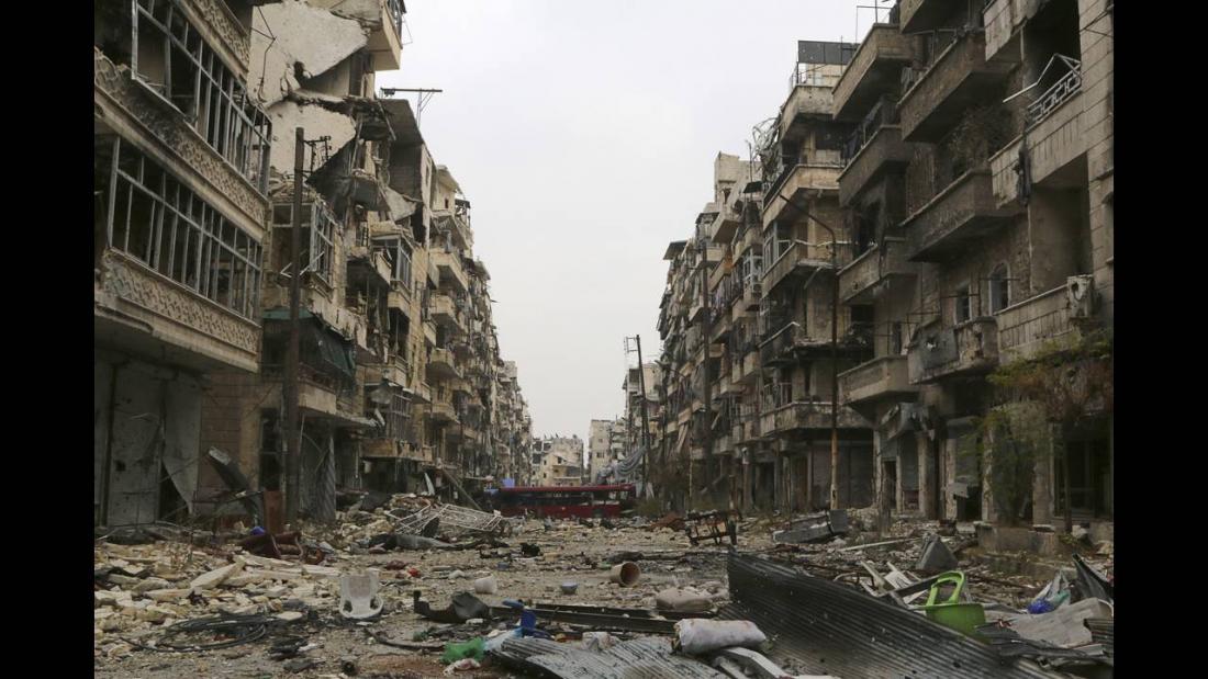 Τα ν από τις ανταρτοκρατούμενες συνοικίες της πρώην οικονομικής πρωτεύουσας της Συρίας, η οποία έχει διαιρεθεί από το 2012 ανάμεσα σε συνοικίες που ελέγχει το καθεστώς στα δυτικά και άλλες που ελέγχουν οι αντάρτες στα ανατολικά.