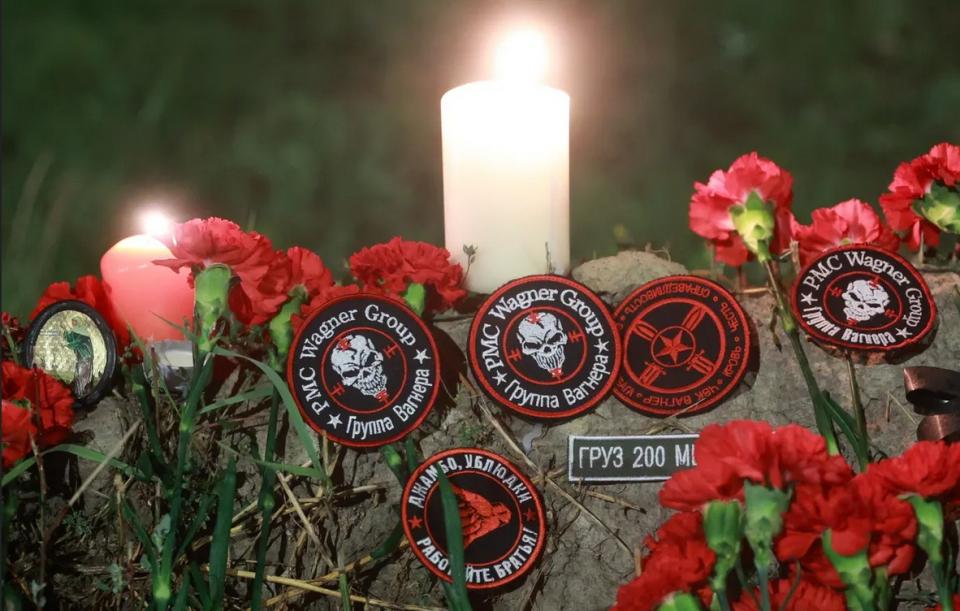 Στη σκιά του γυάλινου κτιρίου όπου η Wagner έχει τα κεντρικά της γραφεία στην ρωσική πρώην αυτοκρατορική πρωτεύουσα, υποστηρικτές του Πριγκόζιν περνούσαν σήμερα για να καταθέσουν κόκκινα γαρίφαλα, τριαντάφυλλα ή διακριτικά με το σύμβολο της νεκροκεφαλής - το λογότυπο της ένοπλης οργάνωσης.