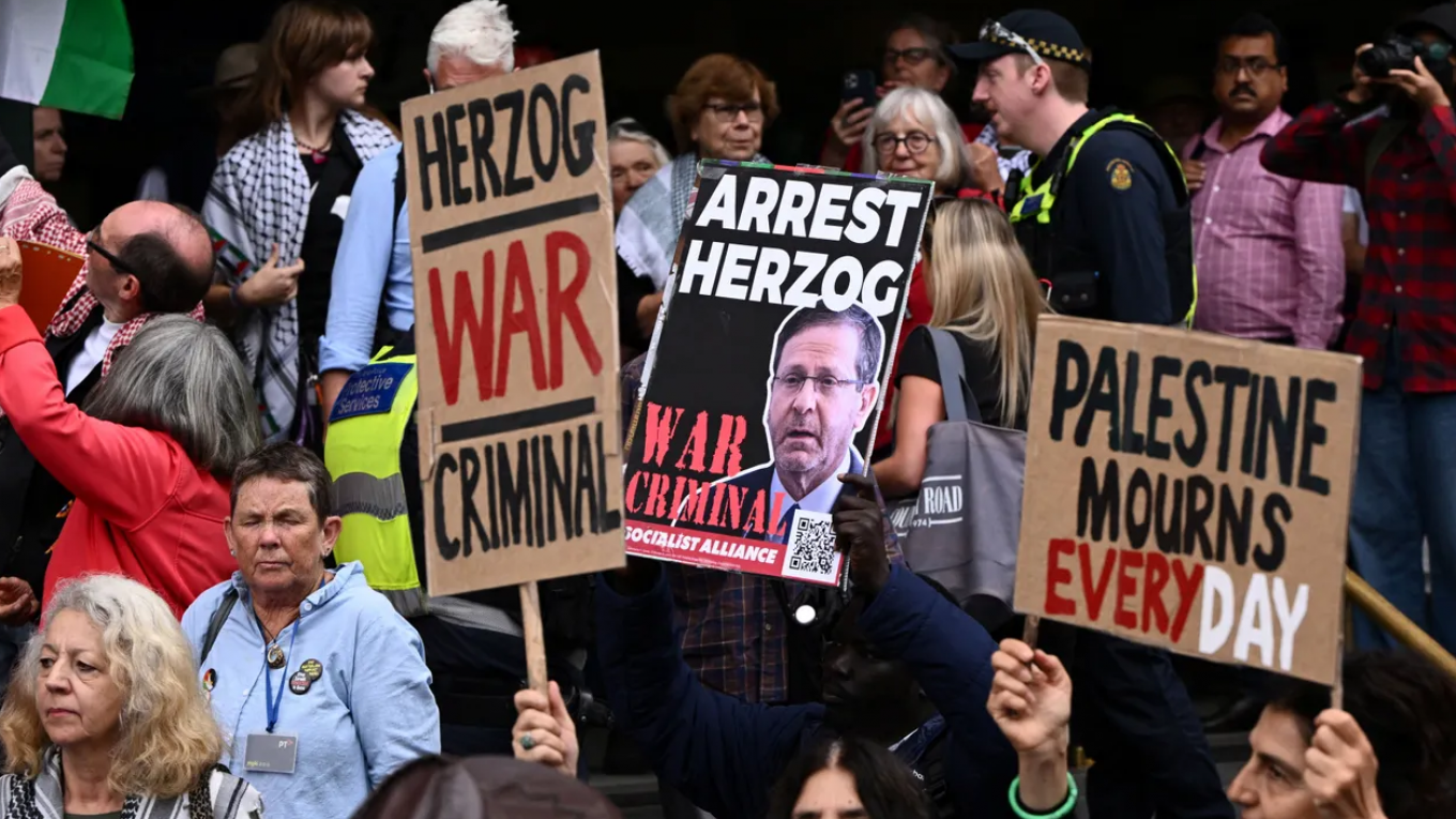 Η κινητοποίηση οργανώθηκε από την ομάδα Palestine Action Group, η οποία κατηγορεί τον Ισραηλινό πρόεδρο για συνέργεια σε εγκλήματα στη Γάζα και ζητεί από τις αυστραλιανές αρχές να εξετάσουν νομικές ενέργειες εις βάρος του.