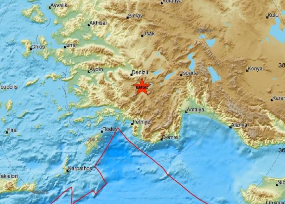 Το επίκεντρο εντοπίστηκε Νότια της πόλης Ντενιζλί.
