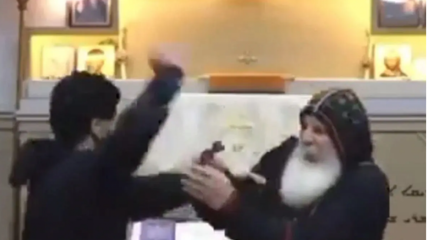 Άμεσα έπεσαν πάνω στον δράστη οι πιστοί που παρακολουθούσαν ζωντανά το κήρυγμα, προσπαθώντας να τον σταματήσουν.